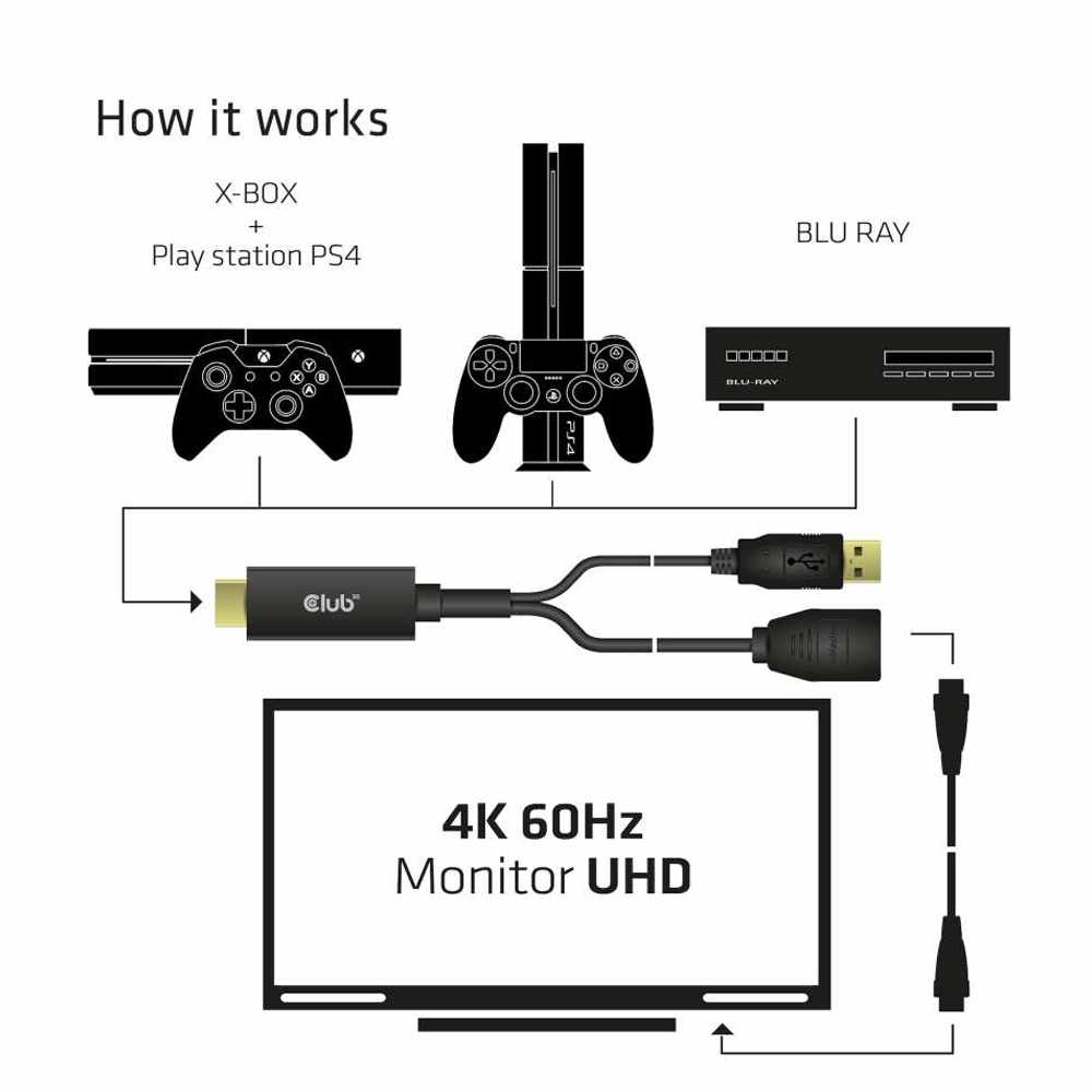 Club3D HDMI 2.0 TO DisplayPort 1.2 4K60HZ HDR Male/Female Active Adapter Black